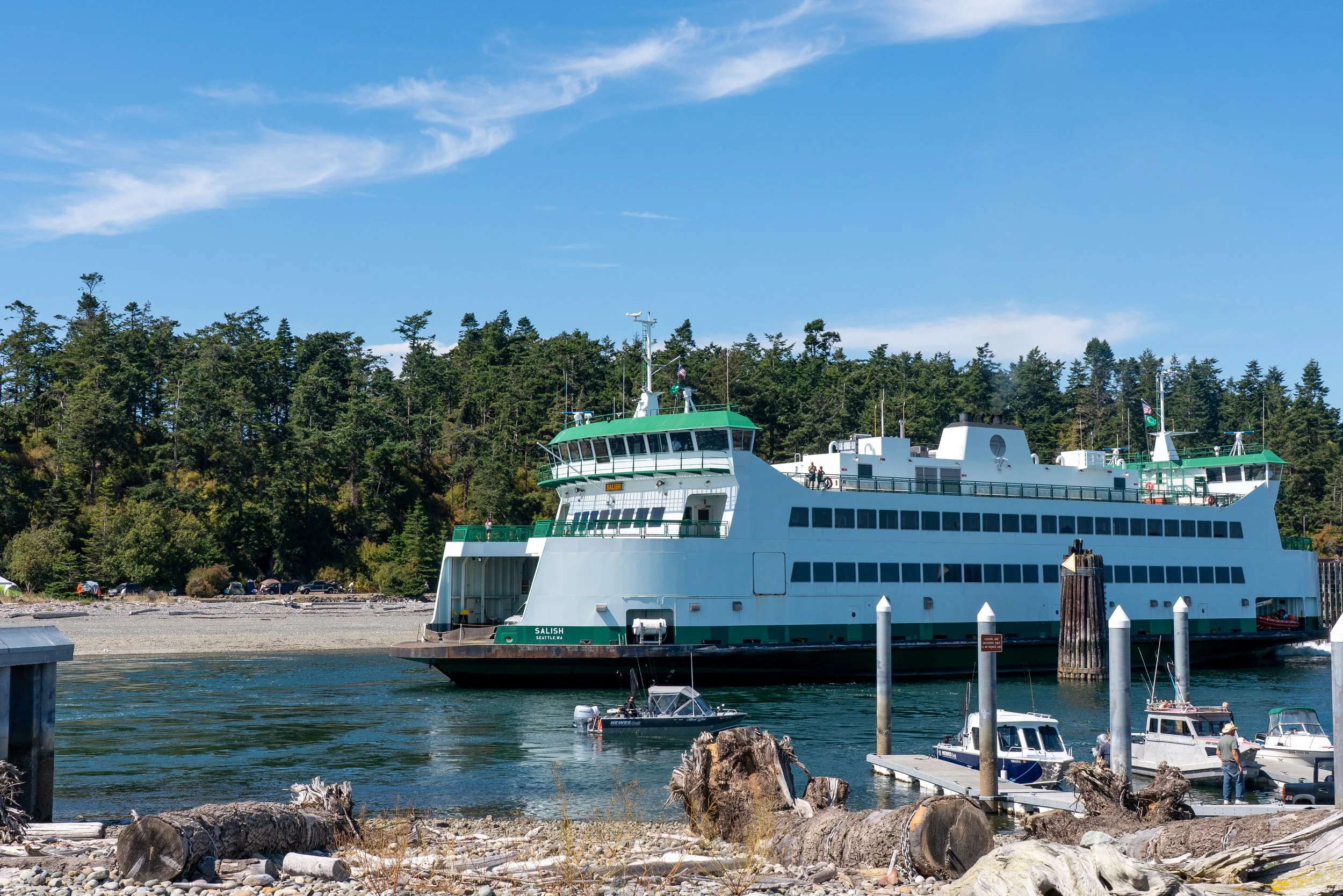You can “drive around” the island by taking I-5 and approaching from the north through Deception Pass Bridge, which avoids the ferry. While the overall travel time is the same (or sometimes less if ferry is busy), this does add 50+ miles to your travel.